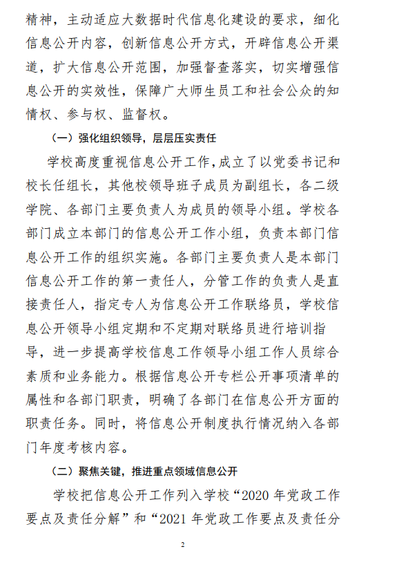 bat365正版唯一官网 2020-2021学年信息公开工作年度报告