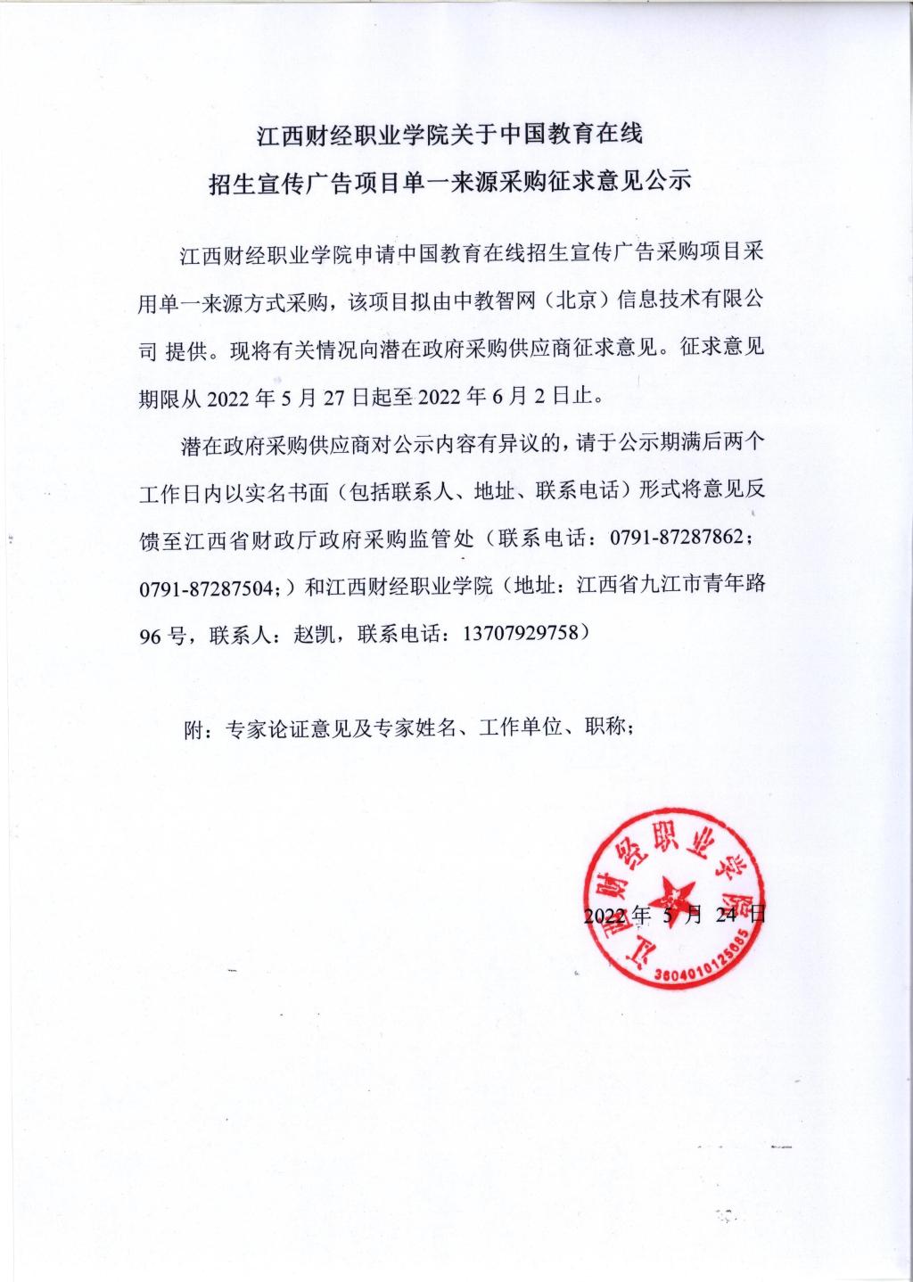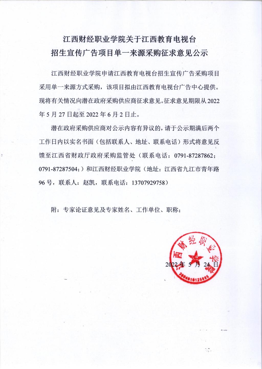 bat365正版唯一官网关于招生宣传广告项目单一来源采购征求意见公示