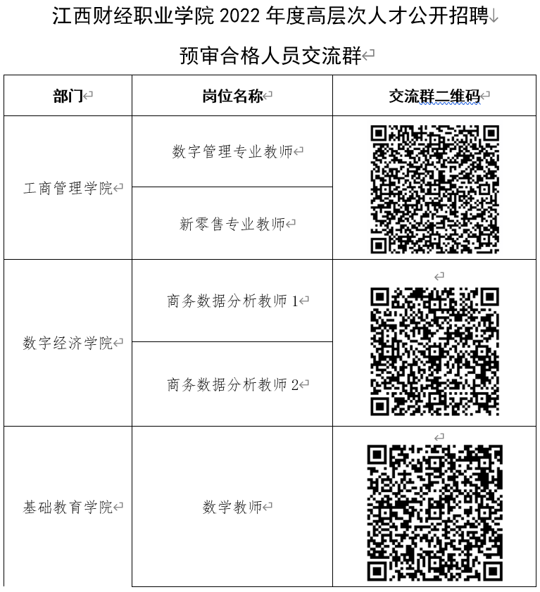 根据bat365正版唯一官网2022年度公开招聘高层次人才工作的安排,为方便学校与考生进行常规交流,答疑解惑,学校已创建各招聘岗位交流群,现公布如下: