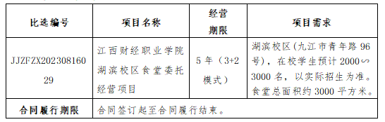 九江振发招标咨询有限公司有关于bat365正版唯一官网湖滨校区食堂委托经营项目(比选编号:JJZFZX20230816029)比选公告