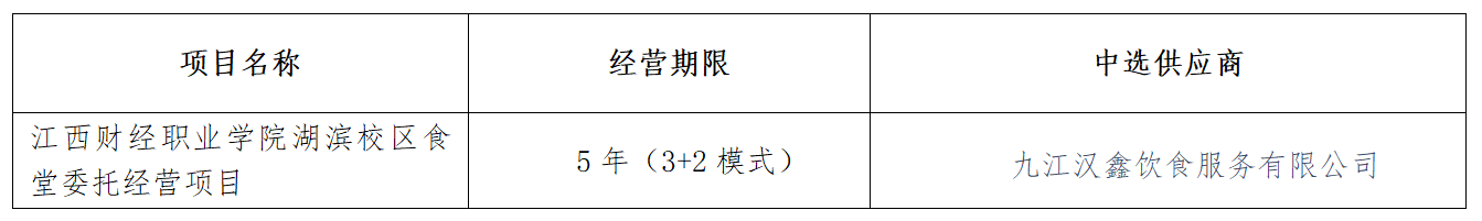 中选供应商:九江汉鑫饮食服务有限公司