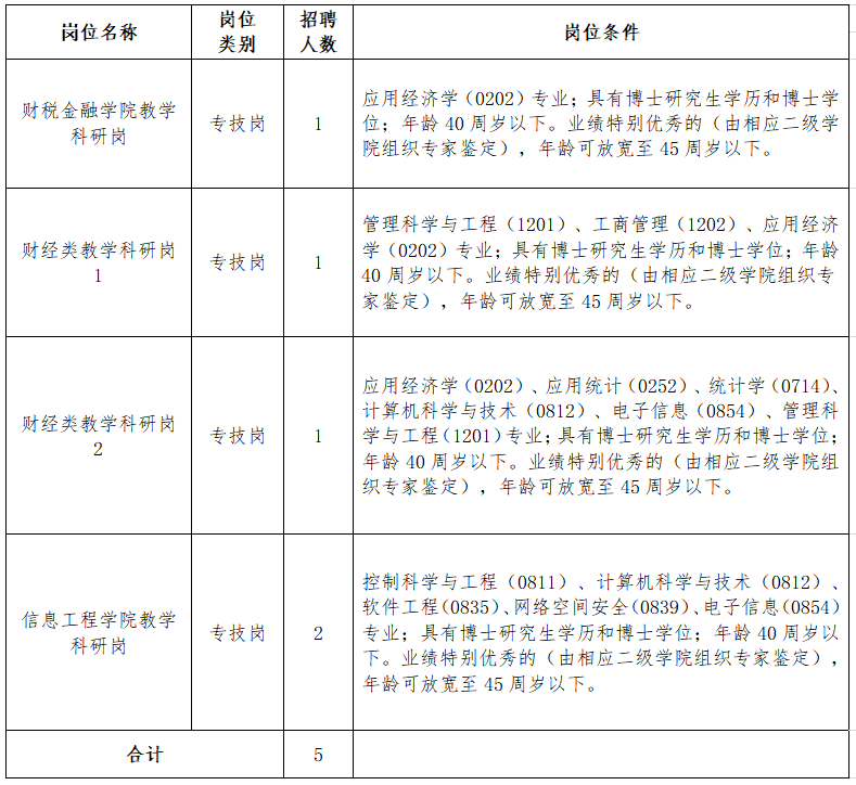 3.以上岗位条件中的学科专业按照教育部印发的《研究生学科专业目录》《专业学位授予和人才培养目录》设置,专业名称后括号中的数字为学科专业代码。