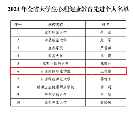 在2024 年全省“大学生心理健康教育先进个人”评选中,经全省各学校推荐、专家评审、公示等环节,10位心理健康教师获此殊荣,bat365王美娟老师榜上有名。这一荣誉的获得,不仅是对王美娟个人在心理健康教育领域所作贡献的肯定,也是对bat365心理健康教育工作的极大肯定和鼓舞。