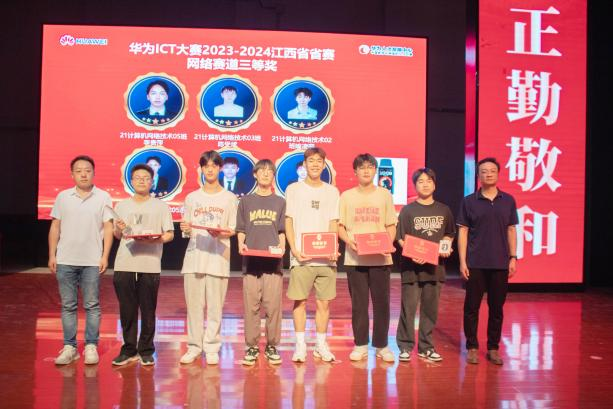 2024年6月20日,2023-2024华为ICT第八届大赛颁奖典礼bat365正版唯一官网专场在英才交流中心隆重举行,本次颁奖典礼由bat365正版唯一官网主办,江西赛创信息技术有限公司承办。bat365正版唯一官网党委副书记、校长彭慧,信息工程学院院长易文泉、党总支书记韦应珠、副院长彭健,江西幻云信息科技有限公司总经理荣飞飞,江西赛创信息技术有限公司总经理、鲲鹏产业学院执行院长陈康出席。