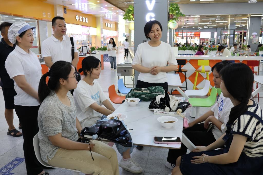 在南区食堂,彭慧一行查看了饭菜成品、价格和质量,与就餐新生及家长交流,征询他们对就餐的意见和建议,并叮嘱学生尽快适应大学生活,对家长给予学校的信任和支持表示感谢。
