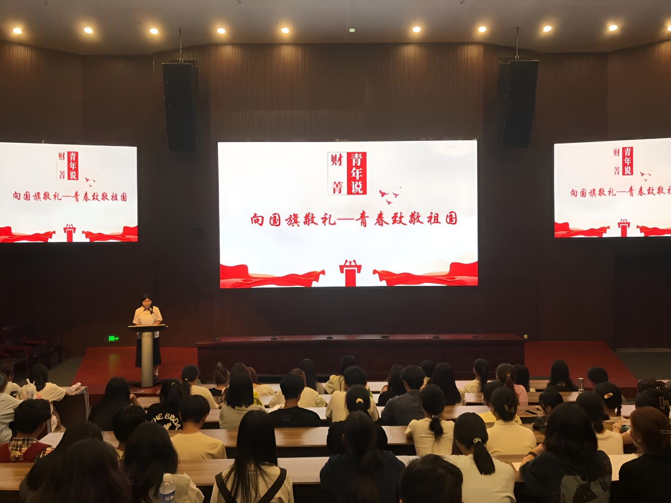 为热烈庆祝中华人民共和国成立75周年,弘扬爱国主义精神,激励青年学生勇担时代使命,9月27日,bat365在八里湖校区2号报告厅举办了以“向国旗敬礼——青春致敬祖国”为主题的“财菁青年说”活动,吸引了200余名学生现场聆听。
