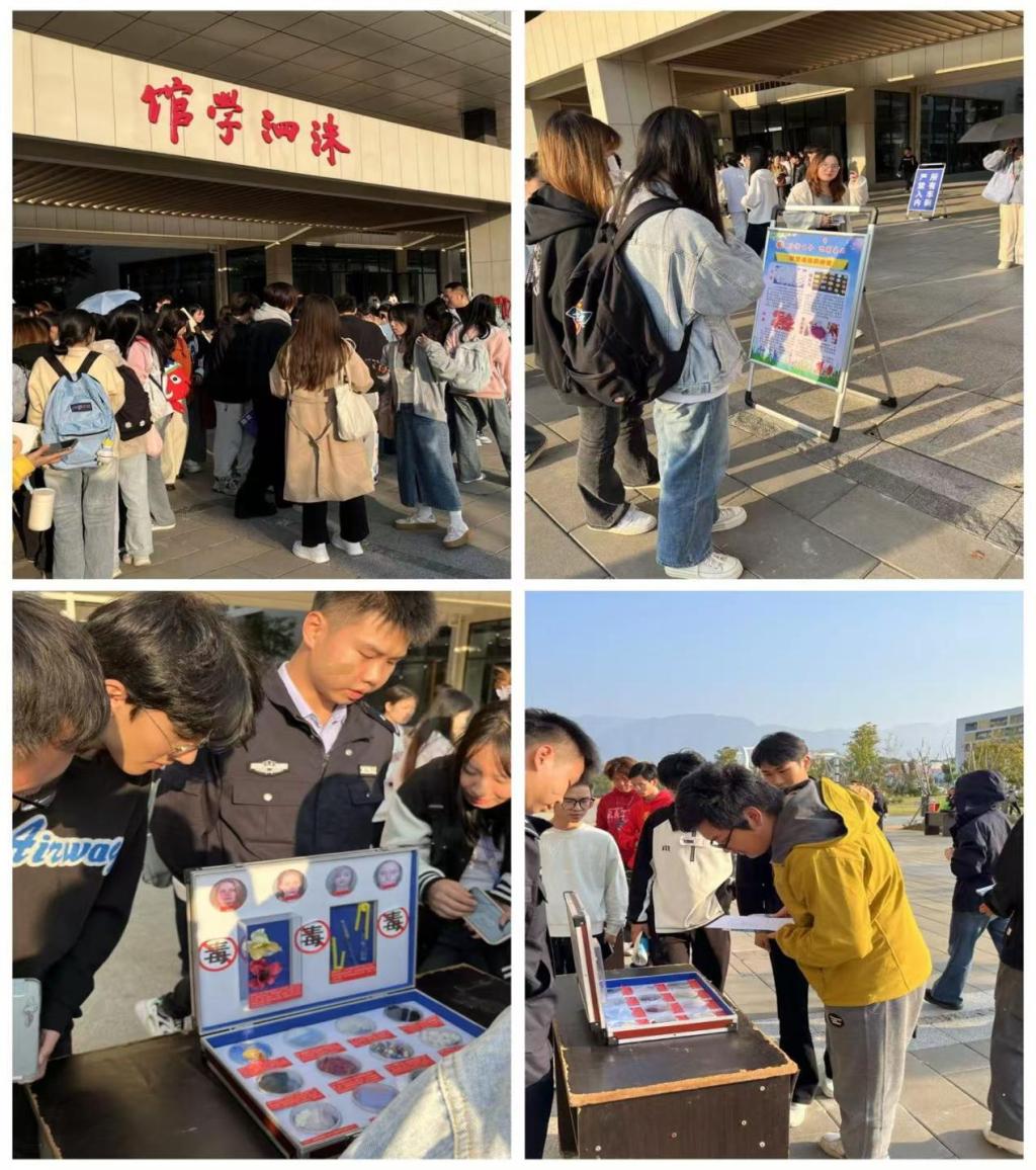 在洙泗学馆活动现场,强戒所民警结合仿真毒品及禁毒宣传手册,为广大青年学子讲解了毒品的基本特征、毒品的伪装、毒品的诱惑,以及刑法中关于毒品犯罪需要承担的法律后果,让学生们真正做到拒绝毒品“六不要”即:不好奇、不赶时髦、不信谎言、不受诱惑、不进易染毒场所、不与吸毒人员来往。生动的展示与讲解让同学们深刻认识到毒品的危害,做到防微杜渐,警钟长鸣。