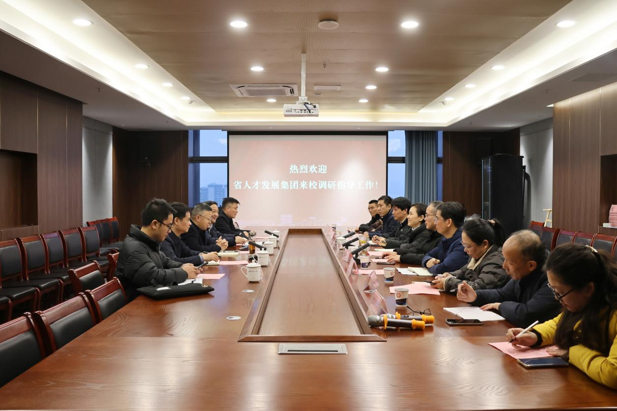 彭元简要介绍了省人才发展集团的基本情况,对双方潜在的合作事项进行了详细阐述。他表示,省人才发展集团将充分发挥省级人才工作综合性平台作用,有效整合校、政、企优势资源,深化双方在相关领域的务实合作,助推学校高质量发展。