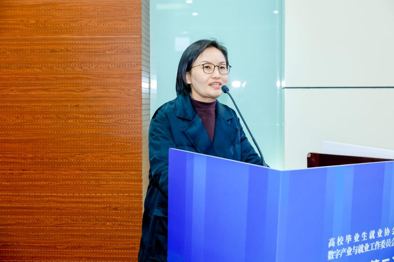 彭慧代表数就工委会理事长单位致辞,她表示,数就工委会成立一年来,按照成立大会确定的工作思路和工作机制,积极发展会员单位,成功组织了多项活动,实施了一批校企合作、产教融合项目,取得了积极成效。下一步将继续加强自身建设,进一步改革优化组织架构、工作机制和奖惩机制,强化资源集成、模式创新,积极开展一批有特色、有影响的品牌活动,深入实施一批有实质、有效果的产教融合项目,精心打造一批有意义、有价值的标志性成果,有效推动教育供给侧和产业需求侧共同发力、相向而行,实现人才培养和产业发展的深度融合对接及良性循环,助力高校毕业生高质量充分就业。她强调,作为理事长单位,学校将严格按照协会的管理要求,认真履行好理事长单位职责,切实发挥好作用、建设好平台、服务好就业、打造好品牌、赋能好产业,努力为工委会建设发展提供有力支持和坚实保障。她希望各成员单位和院校同仁进一步加强工作交流、强化协同配合、凝聚工作合力,共同把工委会打造成有组织、有中心、有活力的命运共同体和产教融合的典范。