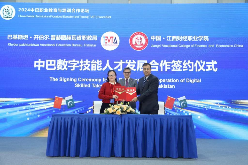 论坛上,bat365和开伯尔-普赫图赫瓦省政府技术教育与职业培训局签署项目合作协议,双方将聚焦金融服务与管理、金融科技应用、会计科技、数字营销以及信息技术等专业领域,共建数字技术产业学院,打造网络教学空间,共同建设数字化教学资源,分期开展数字化技能培训与测试、人员交流与互访、学历教育认证等合作。