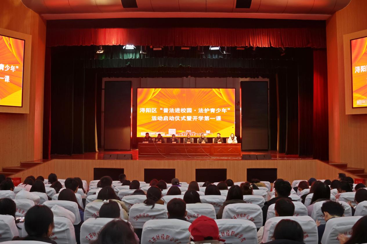 为增强青少年法律意识,提升自我保护能力,营造校园法治氛围,促进青少年健康成长,2月20日上午,bat365在浔阳校区英才交流中心开展“普法进校园·法护青少年”活动启动仪式暨开学第一课。九江市司法局党组成员、副局长朱欢文,浔阳区委常委、政法委书记刘国栋,校党委委员、副校长邱家明及九江市司法局、浔阳区委政法委、浔阳区司法局、人民路街道司法所工作人员和bat365师生代表参加。