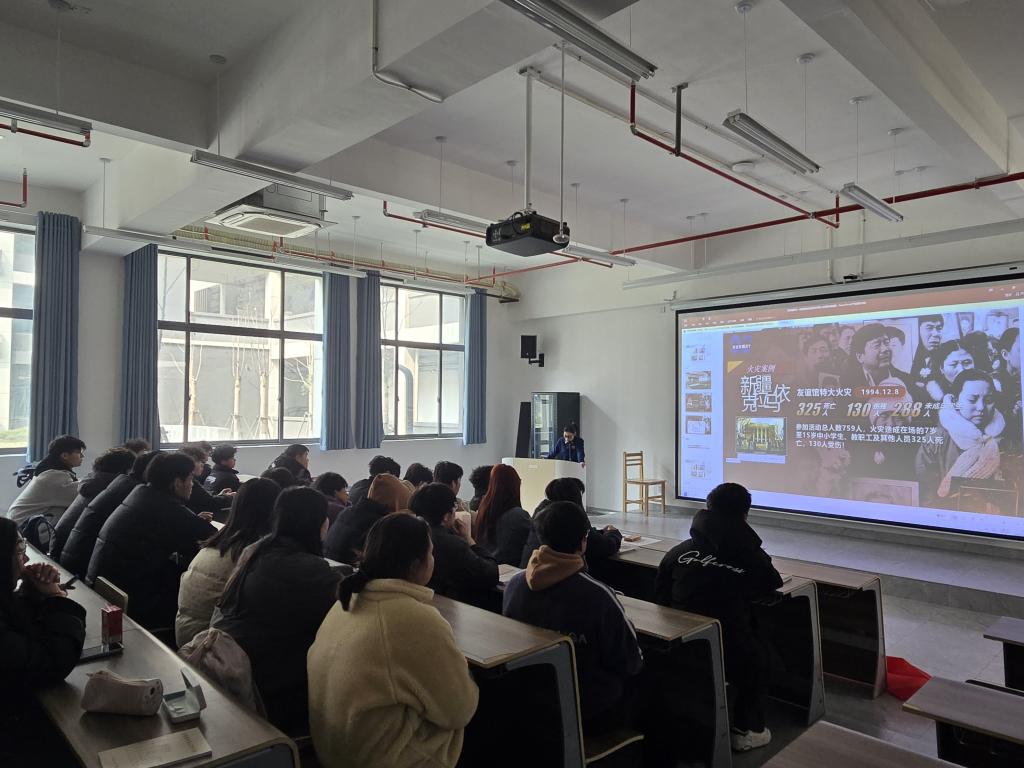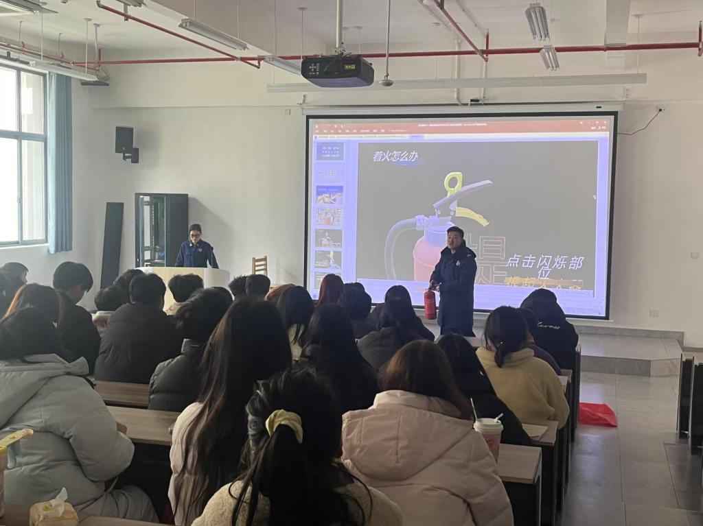 演练前,安全保卫处制定了详细的疏散预案,明确了各环节人员分工及职责。为确保演练安全、顺利开展,2月24日,安全保卫处组织开展了消防安全知识培训,2024级安全信息员作为此次活动的疏散员参加了培训,八里湖新区消防救援大队刘苗苗教官、任志鹏教官授课。培训现场刘教官通过生动的案例,讲解了火灾预防、火灾报警、逃生自救等方面的知识,同时,任教官详细介绍了灭火器的正确使用方法,通过现场演示,让同学们直观掌握操作要领。培训过程中,同学们认真聆听,积极互动,现场学习氛围浓厚。此次培训旨在通过以点带面的形式,让安全信息员们将消防知识传递给班级每一位同学,全面提高大家的消防安全意识和自救互救的能力。