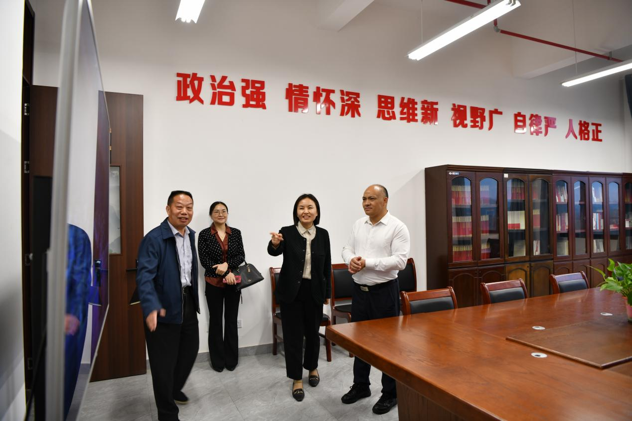 3月27日,省委教育工委宣传部部长、省教育厅社政处处长王宣海一行莅临bat365,就“一站式”社区、心理健康教育咨询中心、大思政课建设等进行实地调研。校党委副书记、校长彭慧,党委委员、副校长邱家明,党委委员刘锋等陪同调研。