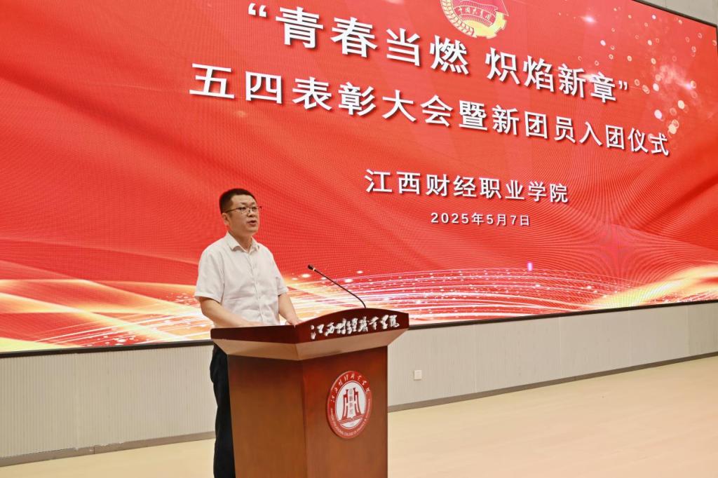 为弘扬五四精神,激励青年学子坚定理想信念,凝聚奋进力量,勇担时代使命,5月7日下午,学校在八里湖校区行政楼1号报告厅举行了“青春当燃 炽焰新章”五四表彰大会暨新团员入团仪式。校党委委员刘锋出席,各二级学院团总支书记及500余名学生代表参加。