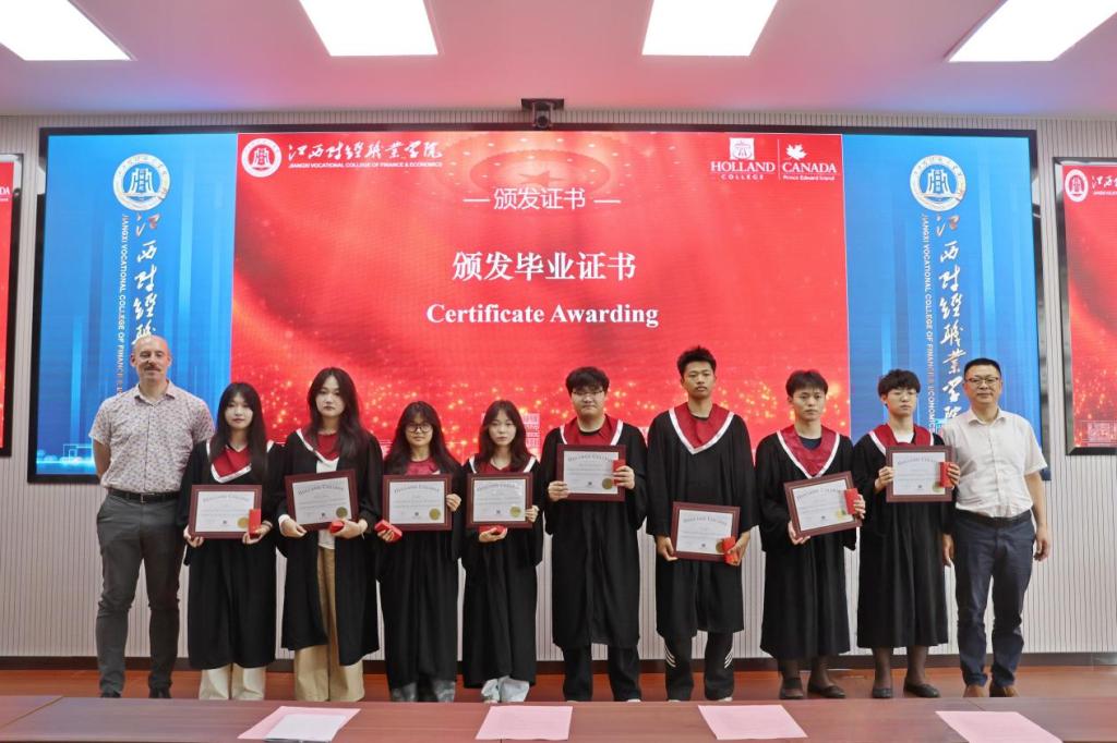 典礼上,中加双方院校领导为毕业生颁发了毕业证书和纪念品,并合影留念。