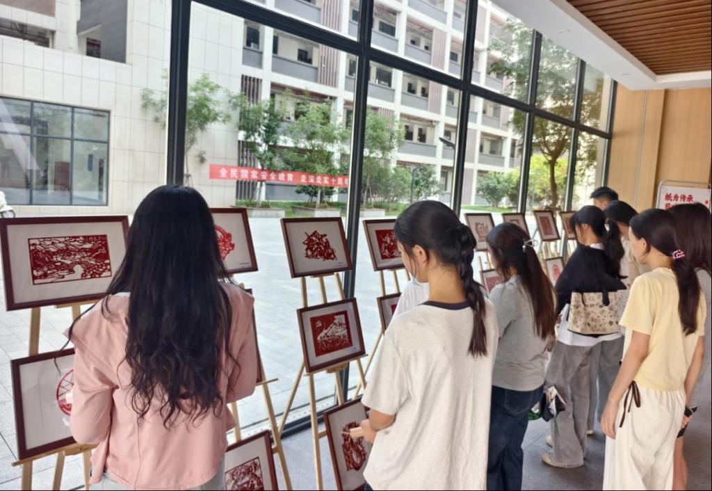 此次展览不仅是对训练营学员学习成果的集中展示,更是学校推动“非遗进校园”与“红色文化育人”相结合的重要实践。通过剪纸这一传统艺术形式,师生们以刀为笔、以纸为媒,将红色故事与时代精神生动呈现,让非遗技艺在传承中焕发新的生机。