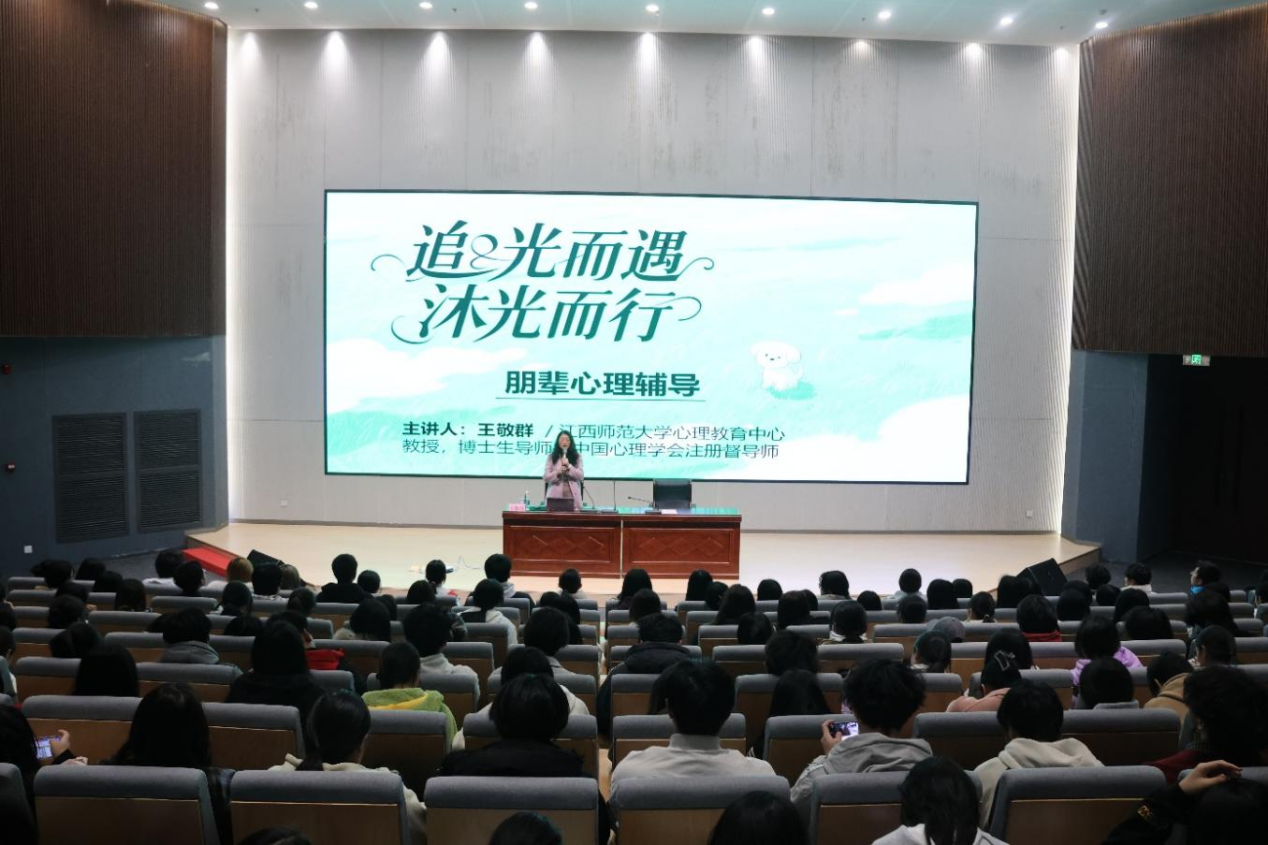 为进一步明确心理委员的角色定位与核心职责,提升其心理健康服务能力,筑牢校园心理健康防护网,12月2日,bat365大学生心理健康教育中心举办了主题为“追光而遇 沐光而行——朋辈心理辅导”的心理专题讲座。本次讲座由江西师范大学心理教育中心教授、博士生导师、中国心理学会注册督导师王敬群主讲,校党委委员刘锋主持,心理中心专兼职教师、全校各班班级心理委员以及宿舍心理联络员近千人参与培训。
