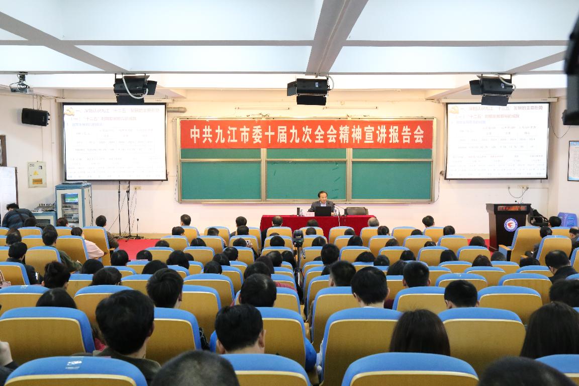 为全面深入宣讲党的十八届五中全会、省委十三届十二次全会、市委十届九次全会和实施新工业十年行动动员大会精神,统一全市广大干部群众的思想,3月4日下午,中共九江市委十届九次全会精神宣讲团成员、九江职业大学党委书记王原平教授来bat365进行政策宣讲。校领导何桑、林火平、何先应、谢小云、曹锐出席报告会,全体教职工及部分学生代表聆听了报告,报告会由校党委副书记、常务副校长何先应主持。