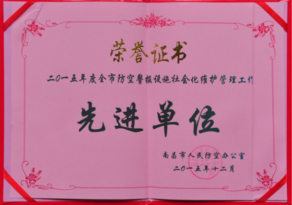 南昌市2015年度防空警报设施社会化维护管理总结会议日前在市人防指挥信息保障中心举行,南昌市人防办副主任周建东,指挥信息保障中心主任王岩、书记胡荣键、通讯指挥处处长吴国兴等领导出席会议。会议对2015年度警报器社会化维护管理暨警报器试鸣工作先进单位和先进个人进行表彰。南昌校区荣获2015年全市防空警报设施社会化维护管理暨警报试鸣工作先进单位称号。