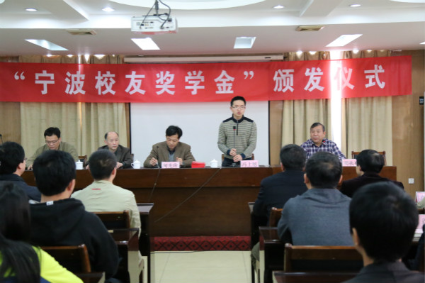 学生工作处副处长詹家伟宣读了学校关于表彰“宁波校友奖学金”获得者的决定。共有48名同学获得宁波校友奖学金,其中一等奖7人金额3000元,二等奖14人金额2000元,三等奖27人金额1000元。