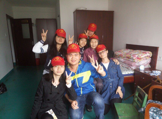 虽然天空下起了小雨,但丝毫没有影响到爱心志愿者们对志愿服务的热情。经过半个小时左右的步行,志愿者们来到白水湖老年康乐中心,看到志愿者们的到来,老人们的脸上都洋溢起灿烂的笑容。志愿者们分成七个小组,每一组到对应的楼层去跟老人们聊天。同时也为老人送去关怀,这份关怀蕴含了志愿者们对老人们深深地敬意和美好的祝福。有的人扶着老人上台阶,有的人与老人聊天,聊一些老人们年轻时的经历,使志愿者们受益匪浅。有些多才多艺的志愿者还给老人唱起了歌,大家似相亲相爱的一家人一般和谐融洽。快乐的时光总是短暂,10:30志愿者们集合到大门口,进行合影留念,用相机记录下这美好的时刻。