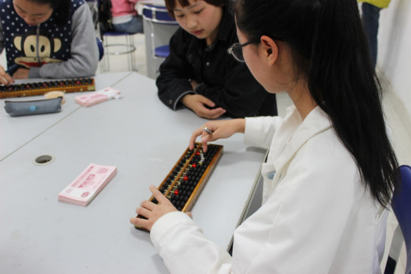 珠算技能分为两指法和三指法,我校学生分别展示了两种手法对珠算从1一直到加到100,5050减1到100。