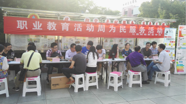 为进一步贯彻和落实好教育部和省教育厅“职业教育活动周”有关精神,根据学校职教周的活动安排, 5月13日下午,bat365在九江市浔阳区湖滨社区开展为民服务活动,财税金融学院、信息工程学院、招就处和教务处等部门老师及学生共30余人在湖滨广场参加了此次活动,活动得到了湖滨社区居委会的大力支持。