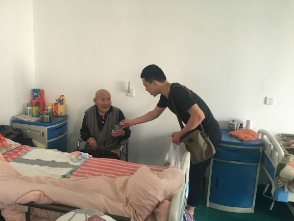 “爷爷,这份是您的,您拿好了。”志愿者张懿将手上的牛奶、水果递给91岁高龄的李爷爷,老人颤着手接了过来,场面十分温馨。志愿者们亲切的与老人们拉家常,了解他们的生活、食宿情况,倾听老人们的心声。老人们都说“今天看到你们这些年轻人,我们这些老人都很激动,我们行动不便,很少去外面活动,在敬老院的日子也很无聊,很孤独, 你们能来这儿陪我们聊聊天,我们很开心。”