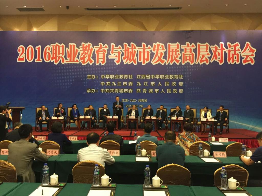 5月26日,由中华职业教育社、江西省中华职业教育社、中共九江市委、九江市人民政府主办的“2016职业教育与城市发展高层对话会”在共青城举行。全国人大常委会副委员长、中华职业教育社理事长陈昌智出席会议。国内知名专家学者、省市有关部门领导、相关高校和企业负责人齐聚一堂,共同把脉职业教育城校联动。校党委书记何桑教授应邀参加对话会。