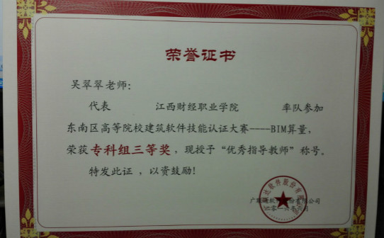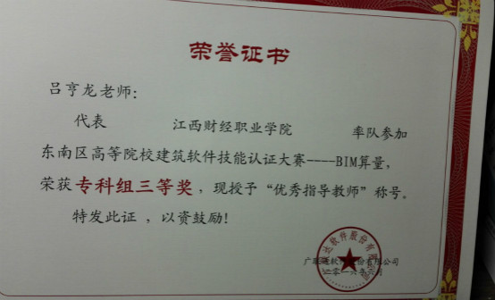 bat365建筑工程学院2014级工程造价专业6位同学在吕亨龙和吴翠翠老师的指导下,在比赛中合力协作,发挥出色,取得了专科组综合三等奖。6位学生的技能成绩均在80分以上,相应获得基础技能等级证书,其中14级工程造价三班的刘小东同学技能成绩在90分以上,获得熟手级技能认证证书。