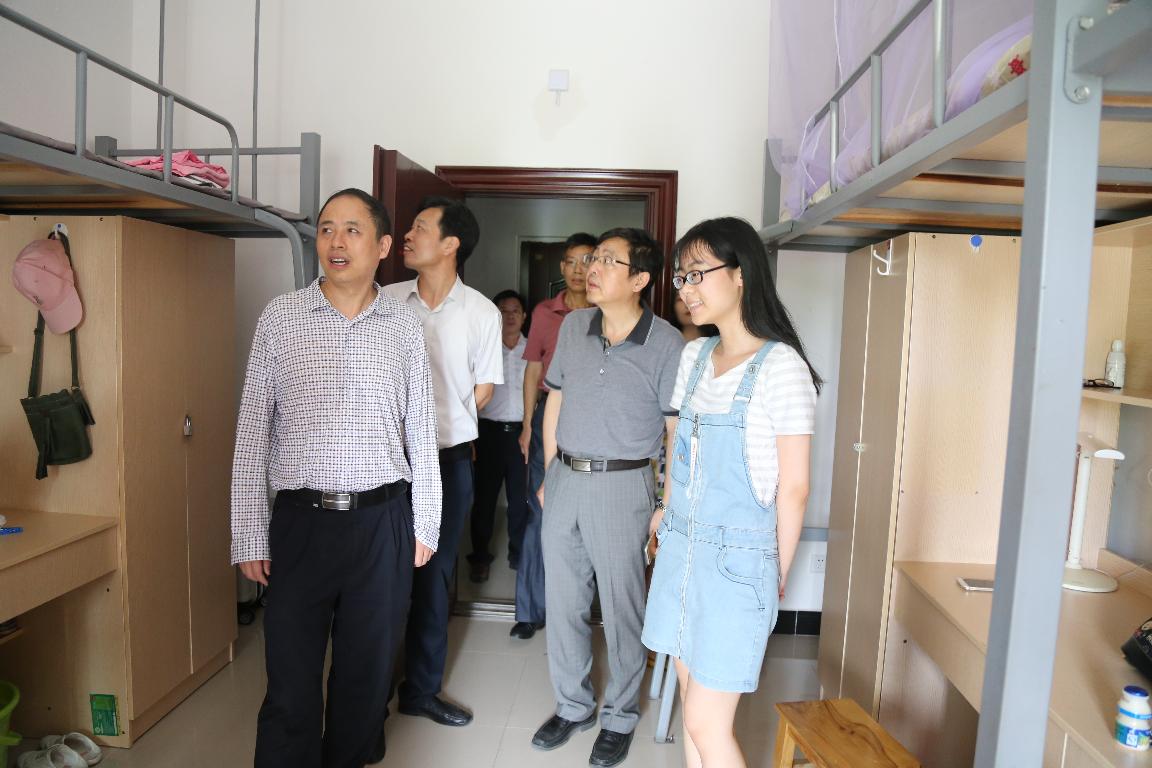 林校长一行分别走访了东区一、三栋及南区七栋公寓。每到一个寝室,林校长都与新生亲切交谈,悉心询问他们来自哪里,吃住是否习惯,以及入校后的感受,并仔细查看了宿舍环境和寝室生活设施布置情况,现场了解学生的需求。
