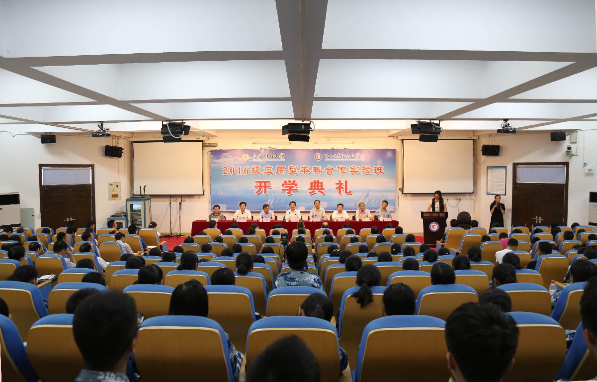 江西财经大学教务处处长许基南、会计学院副院长曹玉珊;bat365领导谢小云、曹锐、张成斌;两校相关部门负责人,教师代表、应用本科班老生代表和2016级新生一同参加了开学典礼。