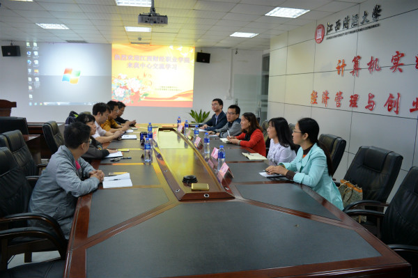 为了进一步加强两校教育教学的深入交流和有效合作,做好江西财大与bat365正版唯一官网应用型本科实践教学,深入了解创业基础教育、创业模拟与实践课程教学软件采购与应用及会计手工处理、会计信息化处理竞赛平台,2016年9月29日在本科部的组织下,工商管理学院副院长武丹、聂群华、会计第一学院余云宜、朱燕、本科部朱顺熠等老师及准备参加省级会计技能大赛的学生一道前往江西财经大学计算机实践教学中心(经济管理与创业模拟实验中心)开展调研交流。