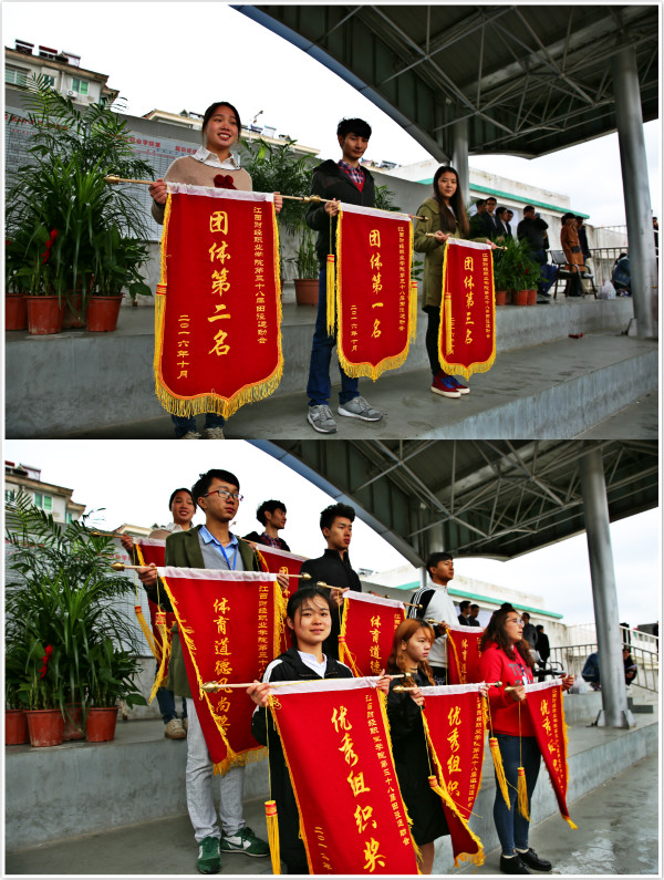 经过三天比赛的激烈角逐,会计第一学院、工商管理学院、财税金融学院分别获得团体总分一、二、三名;会计第二学院、会计第一学院、工商管理学院获得优秀组织奖;会计第一学院、本科部、会计第二学院获得体育道德风尚奖;会计第一学院郭彭莉同学分别打破了女子100米、女子200米两项校运会记录;郭彭莉、曾宪康、陈一博、宁发富、胡万平、邓梦迪、杨如梦、罗莎、孙小霞、张苇娜10名同学荣获本届运动会优秀运动员称号。