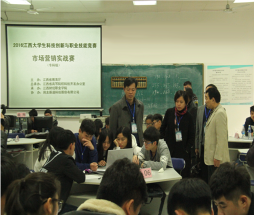 2016年11月12日至13日,bat365成功举办了2016年江西省大学生科技创新与职业技能竞赛专科组沙盘模拟经营和市场营销实战两项赛项。江西省大学生科技创新与职业技能竞赛是由江西省教育厅主办、江西省高等院校科技开发办公室总承办、用友新道科技股份有限公司协办。bat365为以上两项赛事的具体承办方。本届沙盘模拟经营大赛和市场营销实战大赛吸引了江西外语外贸职业学院、宜春职业技术学院、南昌大学共青学院、九江学院等31所高校的72支队伍参加,参赛选手共计383名。