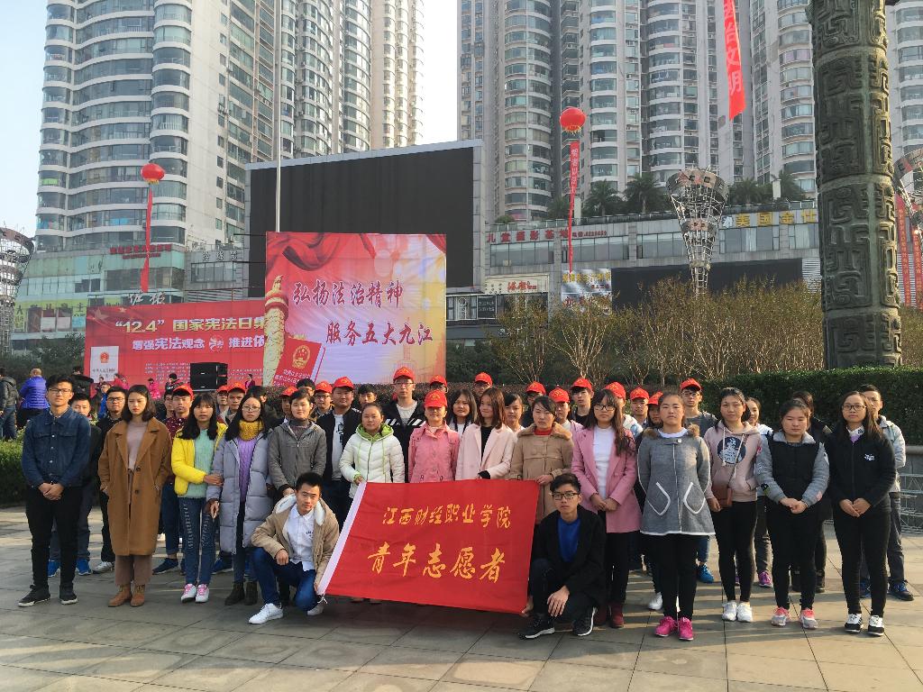 12月1日上午,由九江市法治建设领导小组办公室、市委宣传部、市直属机关工作委员会、市司法局、市普法治市领导小组办公室主办,bat365联合参加的“12· 4”国家宪法日大型宣传活动在九江市和中广场举行。宣传统战处和团委派出50名志愿者参加现场宣传活动,并代表全校师生向宪法作庄严宣誓。