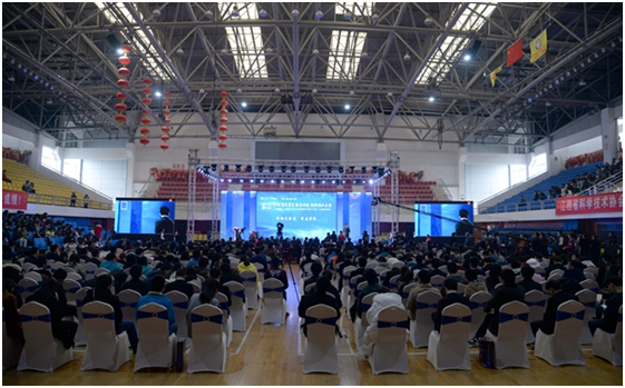 12月11日上午,第四届江西省大学生服务外包创新创业大赛决赛在宜春学院体育馆隆重举行。宜春市副市长杨玉平、校长李雪南、省科协副主席梁纯平,省计算机协会会长、原南昌大学副校长李建民,江西省教育厅大学生科技创新与职业技能竞赛组委会秘书长、江西机电职业技术学院院长陈东林,江西省商务厅服务贸易和商务服务业处调研员吴萍,各参赛代表队和本校2000余名同学来到了大赛现场。