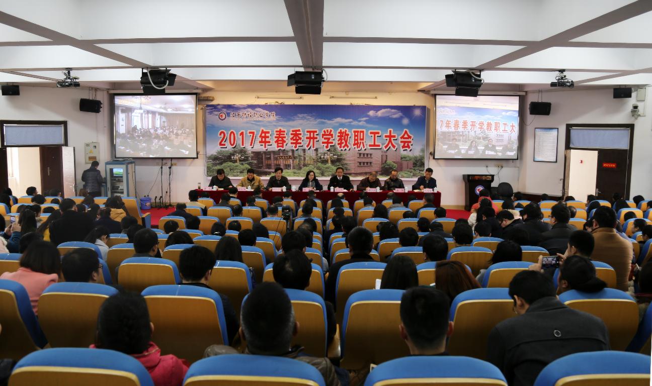2月16日上午,学校在七楼学术报告厅召开2017年春季开学教职工大会,总结上一年度工作并对2017年学校主要工作进行全面部署。校领导班子全体成员出席,全校教职工参加会议。会议由党委副书记、常务副校长何先应主持。