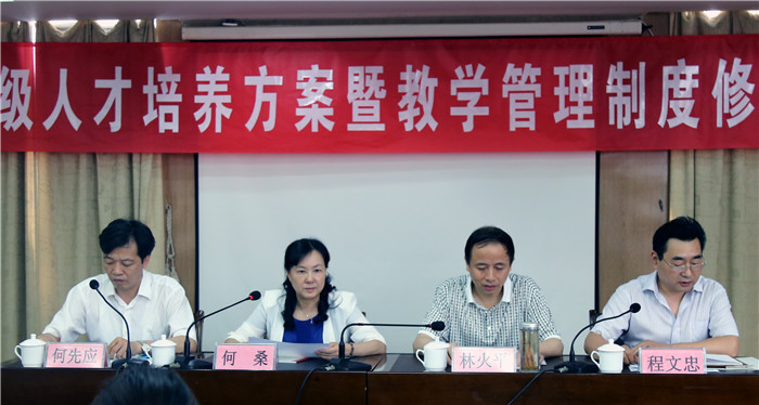 党委副书记、常务副校长何先应对2017级人才培养方案及教学管理制度修订作了具体部署,要求人才培养方案和教学管理制度的修订,一是要遵循教育教学基本规律;二是要遵循“育人为本,彰显特色”、“整体优化,传承创新”、“以人为本,能力为重”、“与时俱新,规范管理”的四个原则;三是对本次修订提出了“‘四个’结合”、“成果固化”、“个性培养”、“充分讨论”等四个要求;四是提出了修订的主要内容和重点。