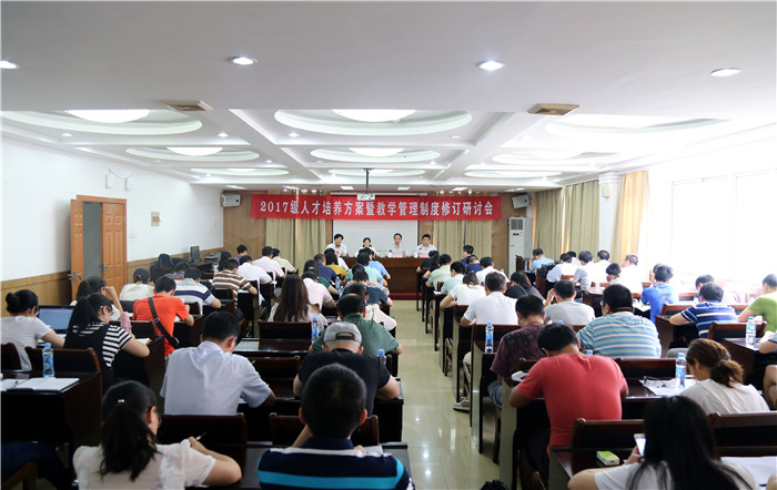 为进一步优化人才培养方案及规范教务教学管理,7月5日—8日,bat365利用暑期时间召开了2017级人才培养方案暨教学管理制度修订研讨会。7月5日上午,研讨会在培训中心二楼会议室启动,本次研讨会校领导高度重视,校党委书记何桑,党委副书记、校长林火平,党委副书记、常务副校长何先应出席会议,各二级学院(部)院长(主任)、副院长(副主任)、各教研室主任、教学干事、有关职能部门负责人及教务处全体人员参加了会议。会议由教务处处长程文忠主持。