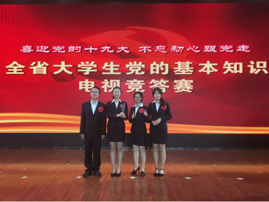 10月11至12日,由省委教育工委、省教育厅主办的江西省大学生党员“喜迎党的十九大,不忘初心跟党走”党的基本知识电视竞答赛在江西工业贸易职业技术学院隆重举行。bat365选派的由尧圆红、李琳、赖明慧、黄仁威4名学生组成的参赛队在此次比赛中经过激烈角逐,从45所高职高专院校中脱颖而出,喜获高职高专院校组团体二等奖。