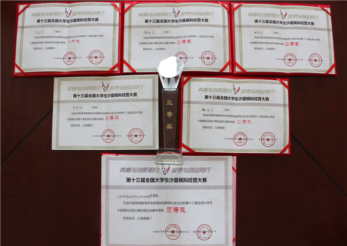 2017年10月28日至29日,由中国高等教育学会高等财经教育分会主办、福建农林大学承办、新道科技股份有限公司提供技术支持的第十三届全国大学生沙盘模拟经营大赛全国总决赛在福建福州隆重举办。经过层层选拔,bat365选派的由14级会计学2班涂亚东、谢宝文、尹细细,15级会计学2班魏运兰、黄细凤五位同学组成的本科代表队在本科部朱顺熠老师的指导下奋力比拼,激烈角逐,从全国121所高校的128支代表队脱颖而出荣获全国总决赛团体三等奖。