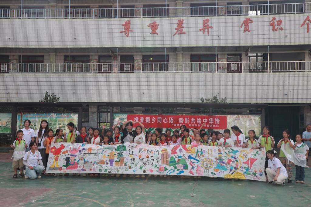 在这个充满活力的夏日,bat365正版唯一官网“益路黔行 语润苗音”推普实践队与贵州省黔东南苗族侗族自治州舟溪镇舟溪小学携手,于7月12日下午共同举办了一场主题为“梦幻画卷,童心飞扬”的创意绘画活动。这场活动不仅跨越了地域的界限,更将赣黔两地的文化精髓巧妙融合,在孩子们的笔下绽放出璀璨的光彩。