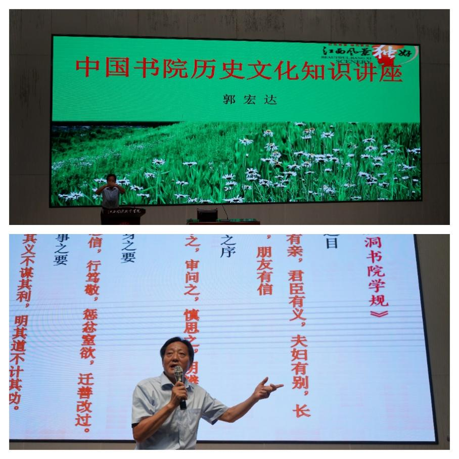 “江西书院甲天下”,遍布赣鄱大地的书院滋养了一代又一代江西人,对江西古代的文化教育事业作出了不可磨灭的贡献。郭宏达特别讲解了白鹿洞书院,并详细的解读朱熹订立的学规——《白鹿洞书院揭示》,以此来阐明教育的根本。讲座最后,郭宏达与全体师生一起朗诵白鹿洞书院学规,在场师生受益匪浅。通过此次培训,全体师生不仅学习了传统文化知识,更在心灵深处坚定了文化自信,激发了对传承中华文化的使命感和责任感。