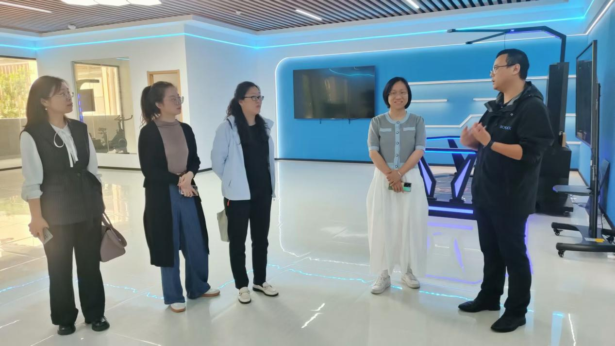 会后,王怡然陪同裘晓飞一行参观了华东智慧金融职业教育虚拟仿真实训基地,体验了虚拟仿真实训项目,进一步交流了基地建设和资源开发的经验和思路。