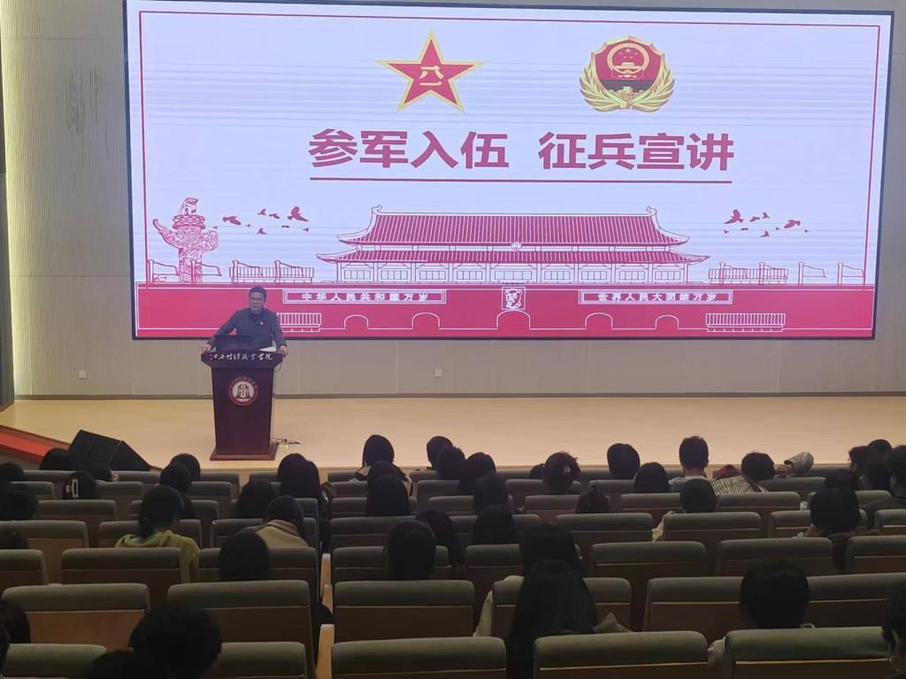 学院党总支副书记赵新村就本、专科学生征兵报名、初审、体检、政审、入伍等流程进行了介绍,重点讲解了江西财经大学入伍后的优抚政策及部队军旅发展前景选择,从军队对高层次人才需求越来越高,参军入伍在部队面临的机遇越来越多,国家出台的优抚政策越来越完善等方面鼓励年轻大学生积极参军,投身到部队磨炼意志、增强体能、丰富阅历、不负青春,努力实现高质量充分就业。
