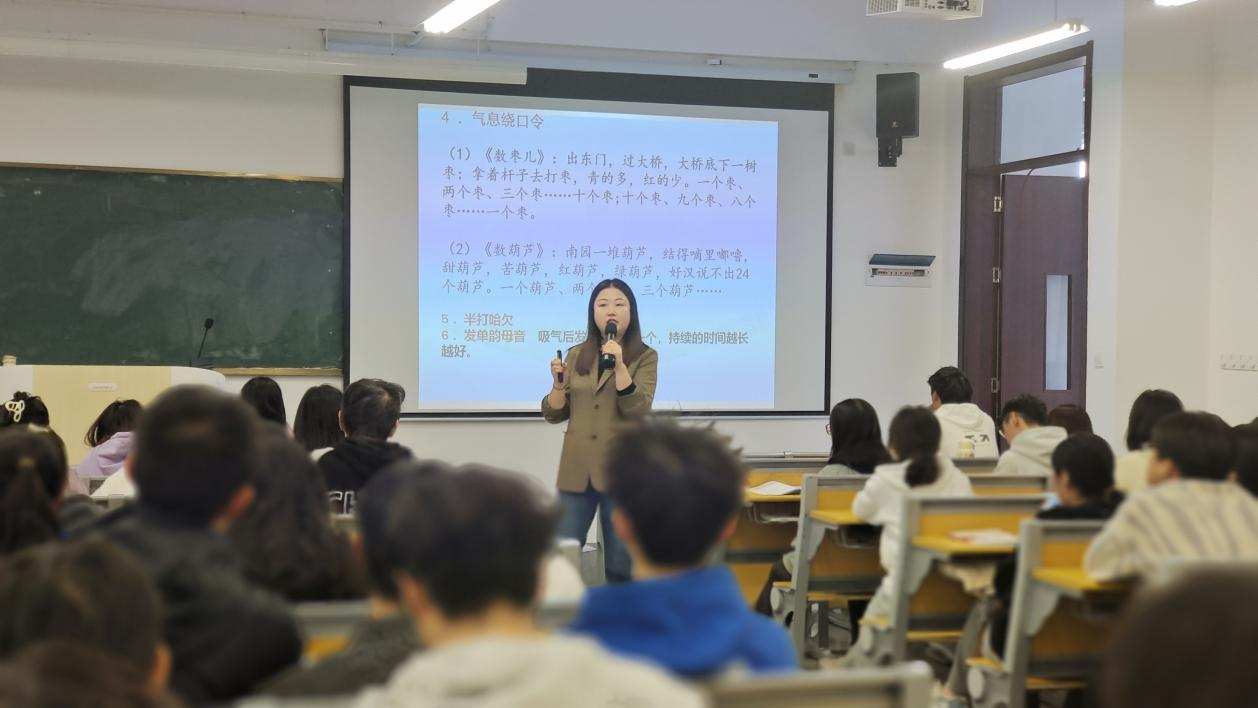 10月24日下午,中文教研室张颖慧老师在八里湖校区一教237教室主讲了《演讲与口才之语音发音基础训练》。教学过程中,张老师牢牢抓住“语音发音基础”这一关键点,精心设计了案例导入、理论详讲,技艺互动、实战运用等教学环节,让每一位学生都参与到学习过程之中,充分调动学生的积极性。整堂课教学内容组织有序、教学方法运用得当、课堂气氛轻松活泼,取得了良好教学效果。