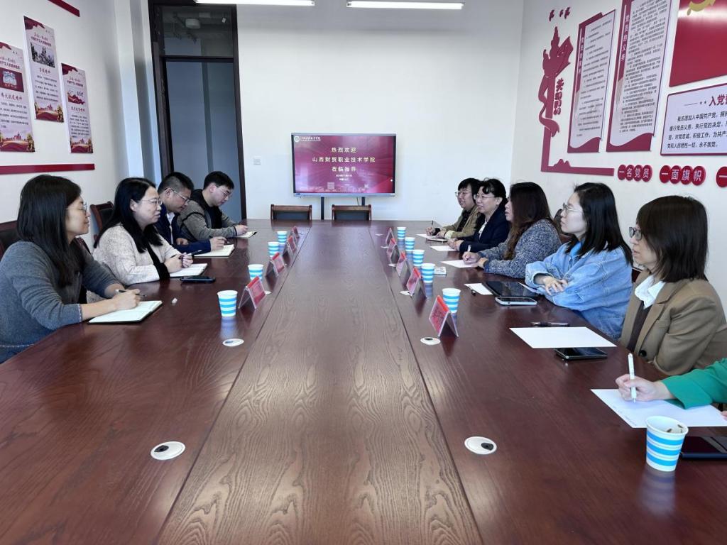 双方在一号教学楼308会议室举行会谈,万凯代表学校向牛艳主任一行表示热烈欢迎,介绍了学校的建校历史,学院在国家级精品课、职业技能竞赛、规划教材、产教融合等领域的发展成果,分享了会计学院政校企合作过程、实训创新过程、人培建设过程中的痛点难点。牛艳主任代表山西财贸职院一行对学校的热情接待表示诚挚感谢,同时介绍了山西财贸职院的优势专业发展成果以及会计系的创设历史,探讨了财经商贸专业对接国家重点产业建设的可行性、可靠性、可持续发展性。