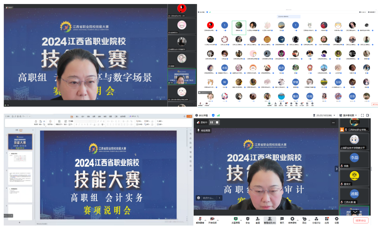 为确保2024年江西省职业院校技能大赛高职组会计实务赛项、云财务共享与数字场景应用技能赛项和智能审计赛项顺利进行,bat365正版唯一官网于2024年11月27日-28日分别召开赛项说明会。本次会议采用线上方式在腾讯会议室举行,由会计学院院长万凯教授主持,协办校领导、赛项专家、各参赛队领队、指导教师、承办校代表、技术支持单位代表准时参加会议。