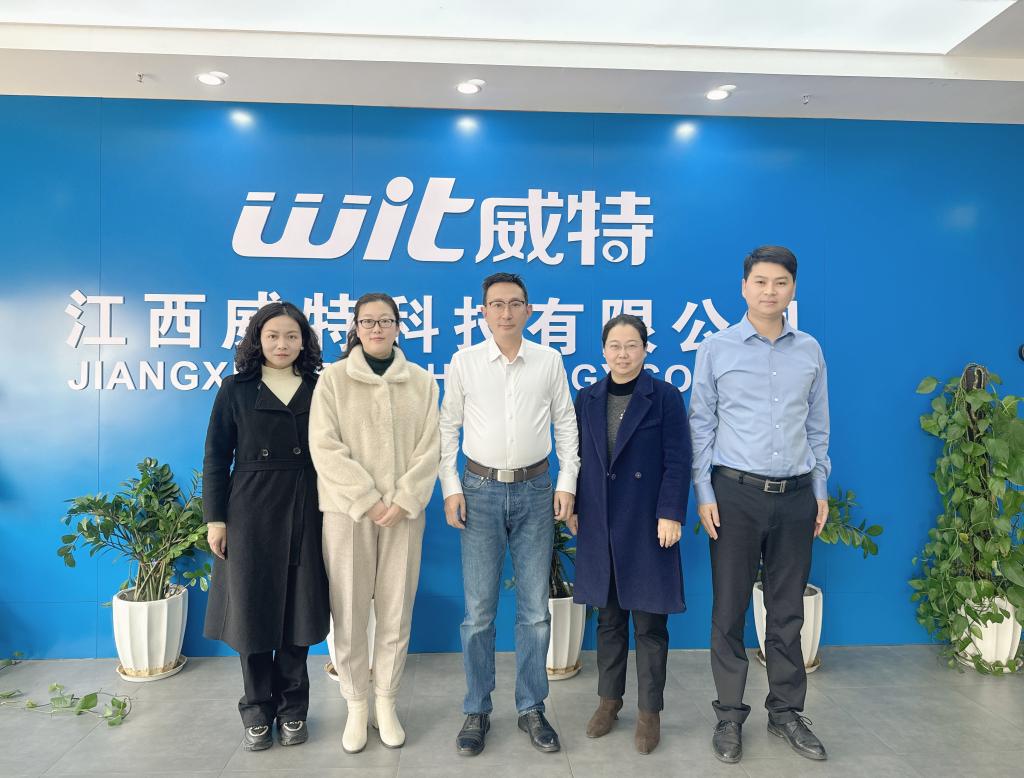 在江西威特科技有限公司,公司董事长唐建民、总经理曾向明对学校一行表示了热烈欢迎,并详细介绍了公司业务情况、实训实习项目的开展情况,万凯和王怡然分别介绍了会计类专业和金融类专业的建设情况,双方重点针对实训实习项目的设计、特色教材的开发、毕业生的岗位推荐等方面进行了详细的探讨,对后期深入开展人才共育、就业项目合作达成了共识。